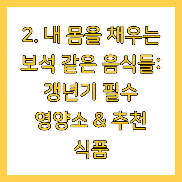 2. 내 몸을 채우는 보석 같은 음식들: 갱년기 필수 영양소 & 추천 식품
