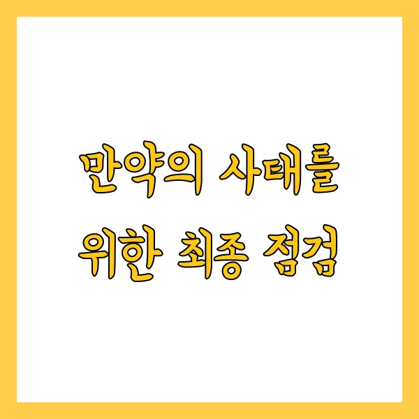 아무리 완벽하게 준비해도 예상치 못한 일은 발생할 수 있습니다. 하지만 최종 점검 리스트를 통해 그 충격을 최소화하고 신속하게 대응할 수 있습니다.