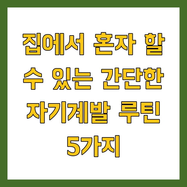 복잡한 세상에서 잠시 벗어나 오롯이 자신에게 집중하는 시간, 자기계발은 더 나은 '나'를 만들어가는 여정입니다. 거창한 계획이나 값비싼 투자가 필요한 것이 아닙니다. 하루 10분, 20분이라도 꾸준히 실천할 수 있는 작은 습관들이 모여 놀라운 변화를 만들어낼 수 있습니다. 이 글에서는 집에서 혼자, 쉽고 간편하게 시작할 수 있는 5가지 자기계발 루틴을 소개합니다. 지금 바로 시작하여 삶의 활력을 되찾고, 잠재력을 깨워보세요!