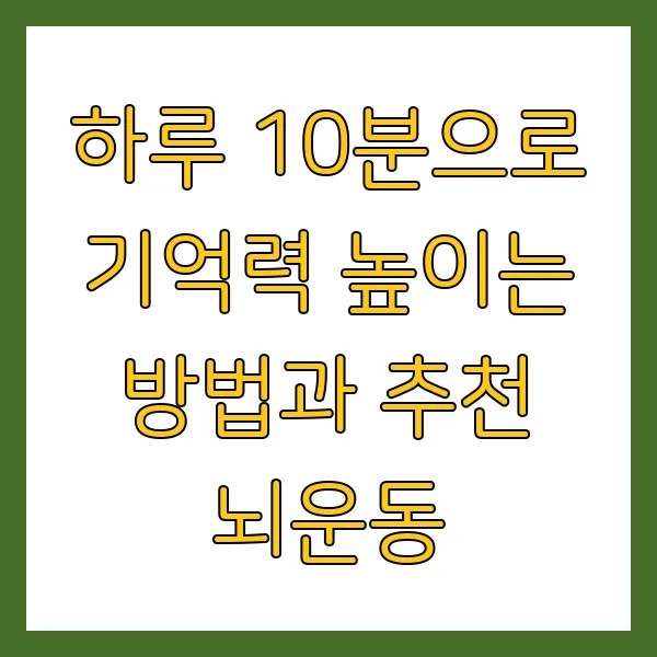 #기억력향상 #뇌운동 #두뇌건강 #10분습관 #마음챙김 #명상 #심호흡 #뇌게임 #일기쓰기 #독서 #걷기 #요가 #스트레칭 #새로운기술 #식습관 #수면 #스트레스관리